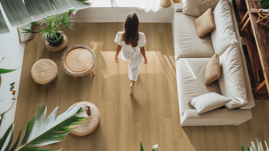 An extra layer provides greater acoustic comfort and is standard with the product. This means there is no separate material to install. This soundproof base absorbs up to 21dB of noise, making it 50% quieter than other LVT vinyl floors and because it is inbuilt it is fast and more cost effective to install.